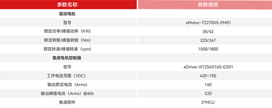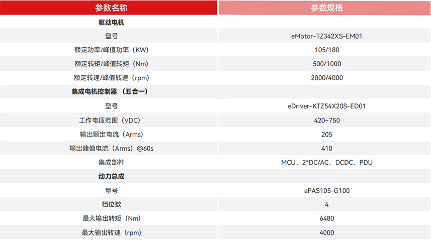 永磁同步電機+4AMT變速箱,調教優化,系統效率高至94%; 180 kW峰值功率、1000 Nm峰值扭矩,動力充沛; 動力優于同等級功率電機約8%