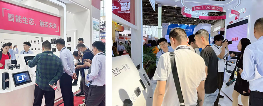 此外最為搶眼的還得數(shù)人機(jī)交互區(qū)域,最新的智能座艙系列產(chǎn)品、顯控一體機(jī)等設(shè)備,吸引眾多客戶駐足體驗互動,設(shè)備不僅可實現(xiàn)上電即用,并且環(huán)境可靠性高,適用于各種惡劣環(huán)境,再配合智能按鍵面板以及電源管理?,可拓展更多用戶自定義功能,為客戶量身打造多元化的智能座艙場景。