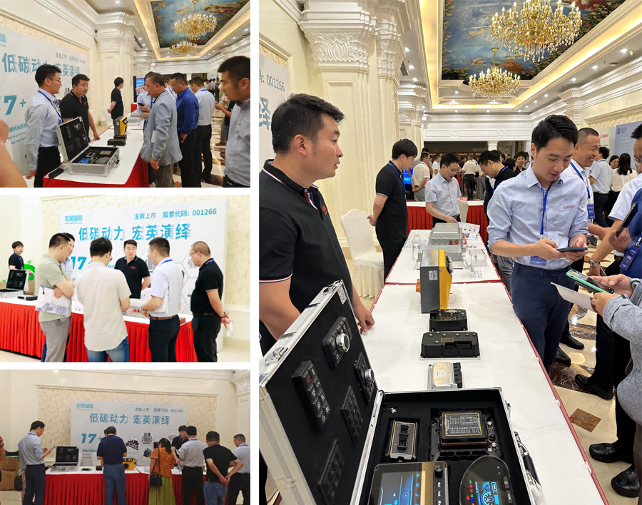 除主題會議和產業論壇,大會還布置了專題展區,展示新能源工程機械關鍵零部件技術與產品,mg不朽情緣智能在本次大會上展出了多款電機控制器、TVCU控制器、充電盒、輔驅、電源管理?、儀表屏等電動化和智能化產品,引來眾多參會者駐足參觀與探討。mg不朽情緣智能既為客戶提供標準化的產品,也為客戶提供定制化的解決方案。